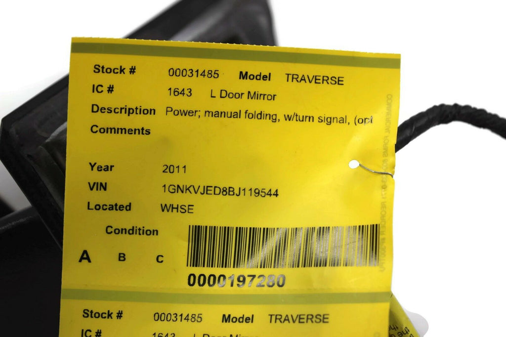 2008-2014 Chevy Traverse Driver Left Side Power Door Mirror White 31485