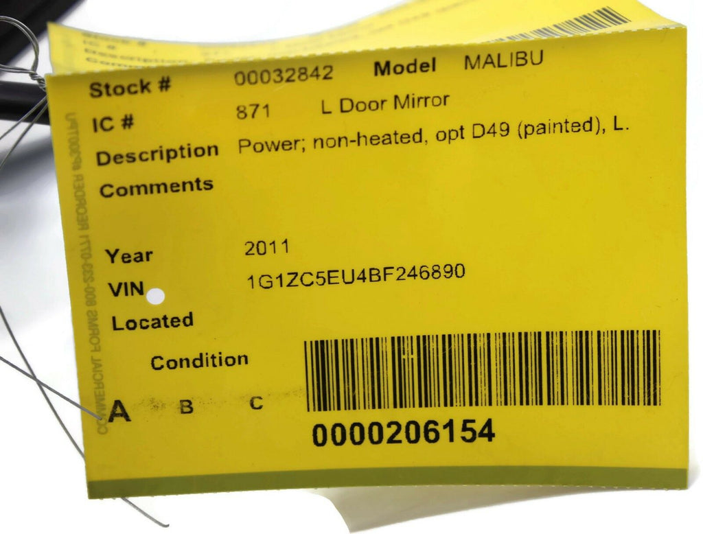 20108-2012 Chevy Malibu Driver Left Side Power Door Mirror White 32842