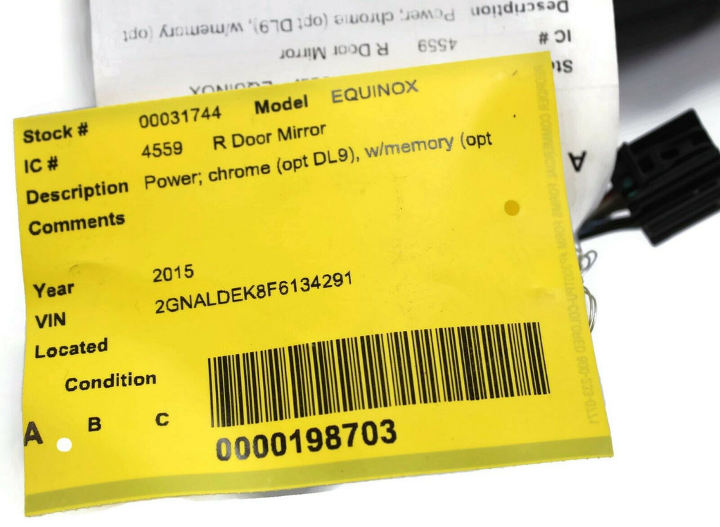 2011-2015 Chevy Equinox Passenger Right Power Door Mirror Chrome 31744