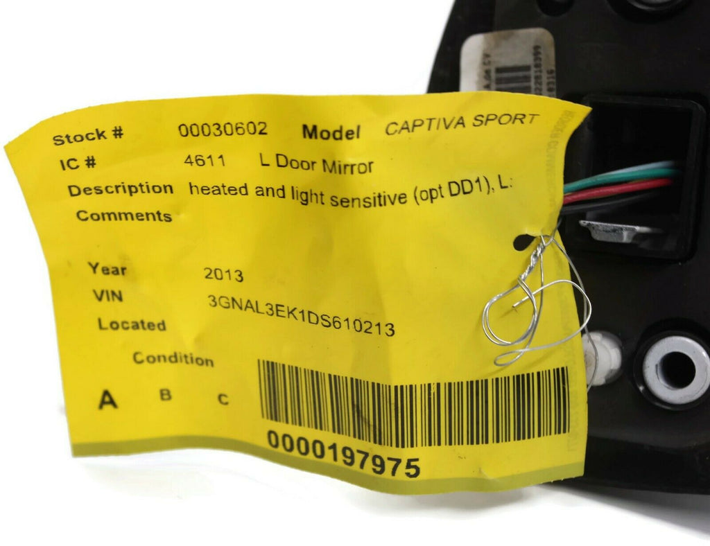 2012-2015 Chevy Captiva Sport Driver Left Power Door Mirror White 30602