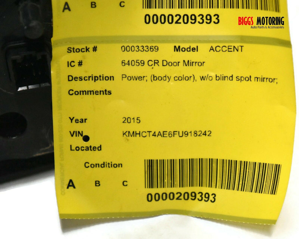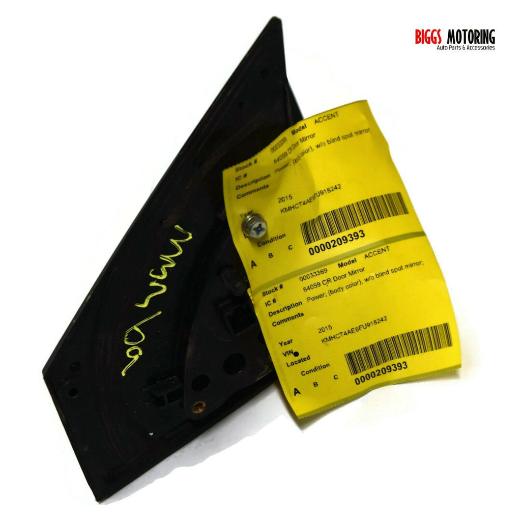 2012-2017 Hyundai Accent Passenger Right Side Power Door Mirror White 33369