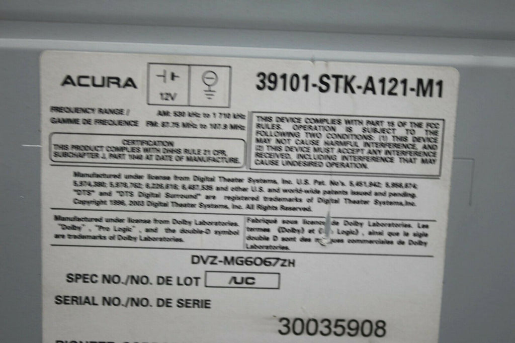 2008-2009 Acura RDX Radio Stereo 6 Disc Changer CD Player 39101-STK-A121-M1