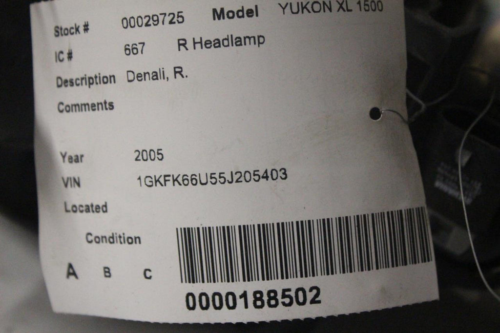 2001-2006 GMC YUKON XL1500 FRONT PASSENGER RIGHT SIDE HEADLIGHT 29725