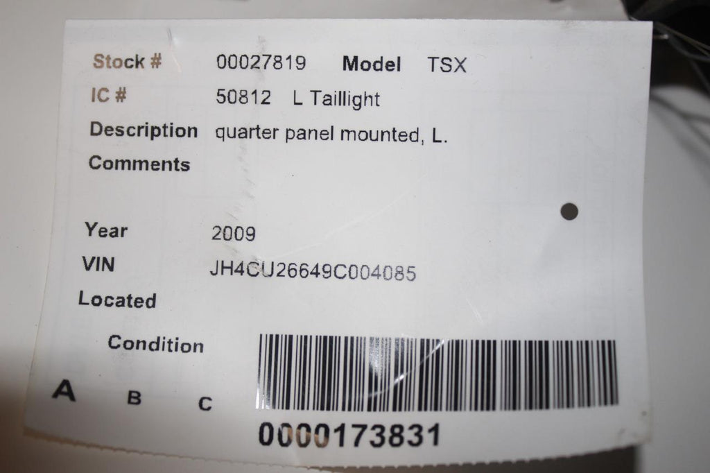 2009-2011 ACURA TSX DRIVER LEFT SIDE REAR TAIL LIGHT 27819