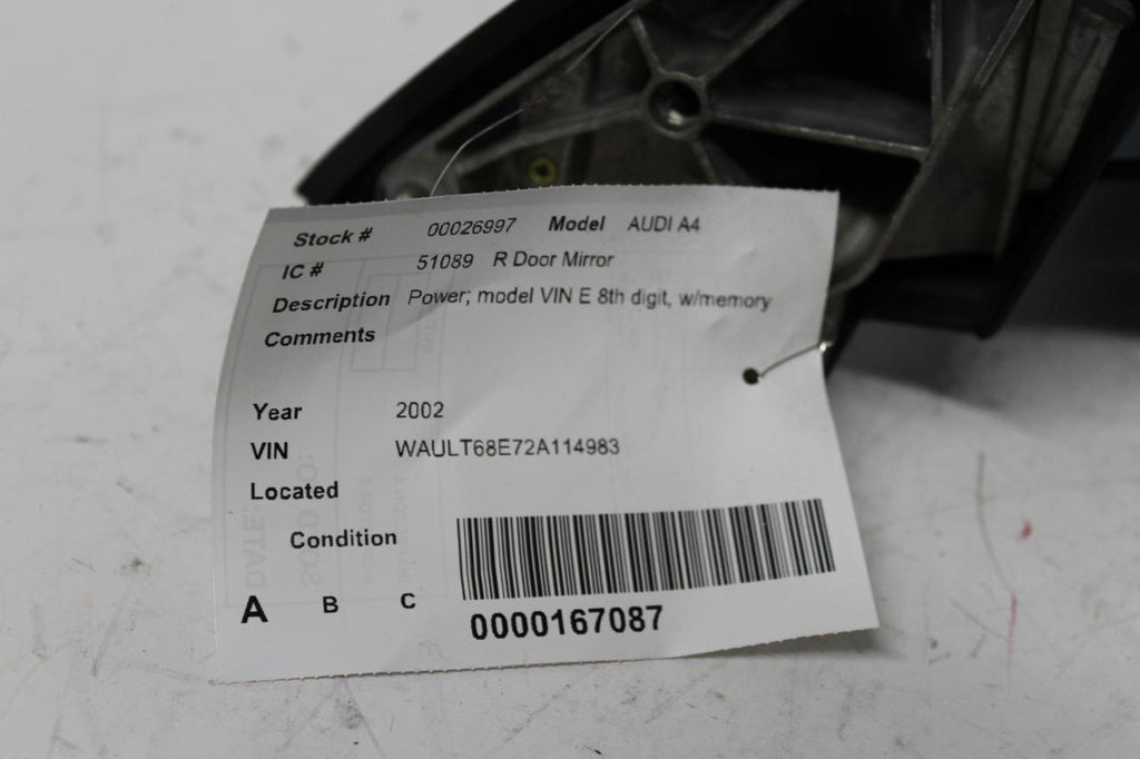 2002-2008 AUDI A4 PASSENGER RIGHT SIDE POWER DOOR MIRROR BLUE 26997