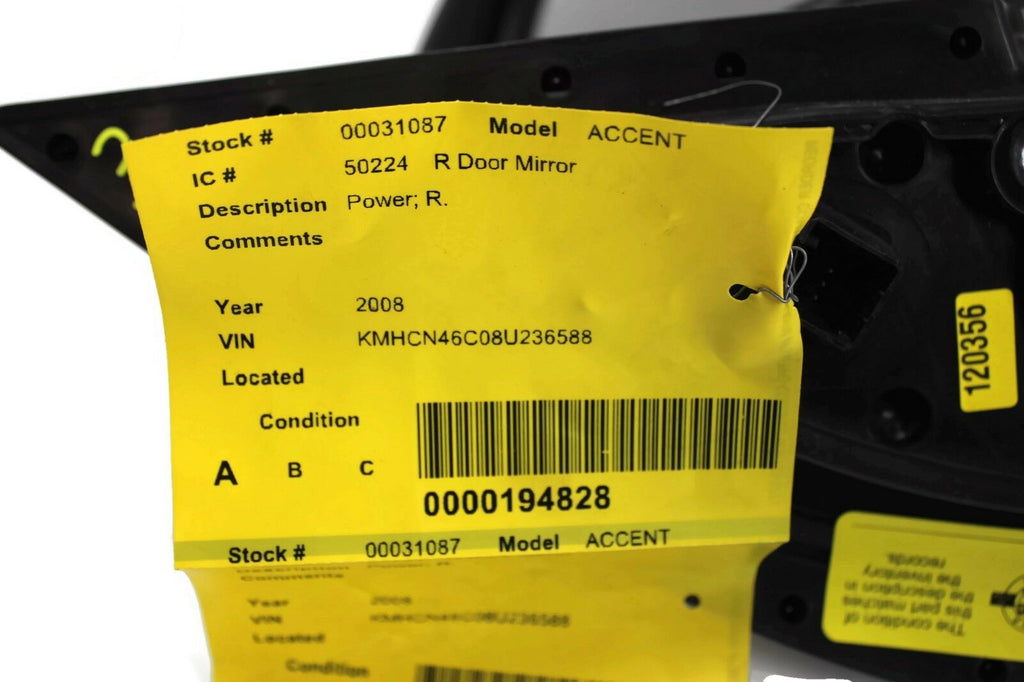 2006-2009 Hyundai Accent Passenger Right Side Power Door Mirror Silver 31087