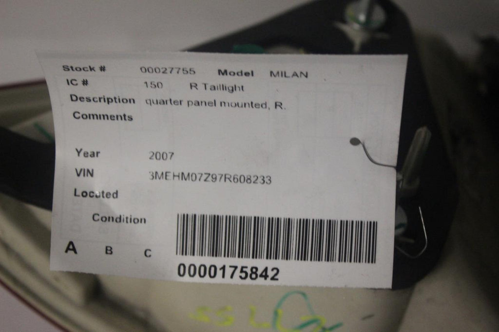 2006-2009 MERCURY MILAN PASSENGER SIDE TAIL LIGHT 27755