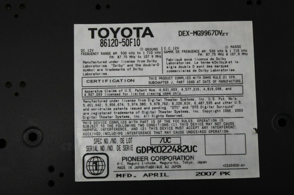 2007-2009 Lexus LS460 Mark Levinson P6501 Radio Stereo Cd Player 86120-50F10