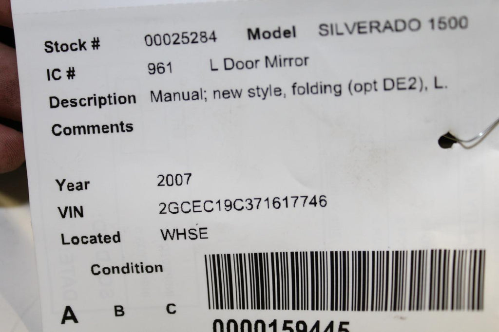 2007-2010 CHEVY SILVERADO 1500 DRIVER LEFT SIDE MANUAL DOOR MIRROR BLACK 25284