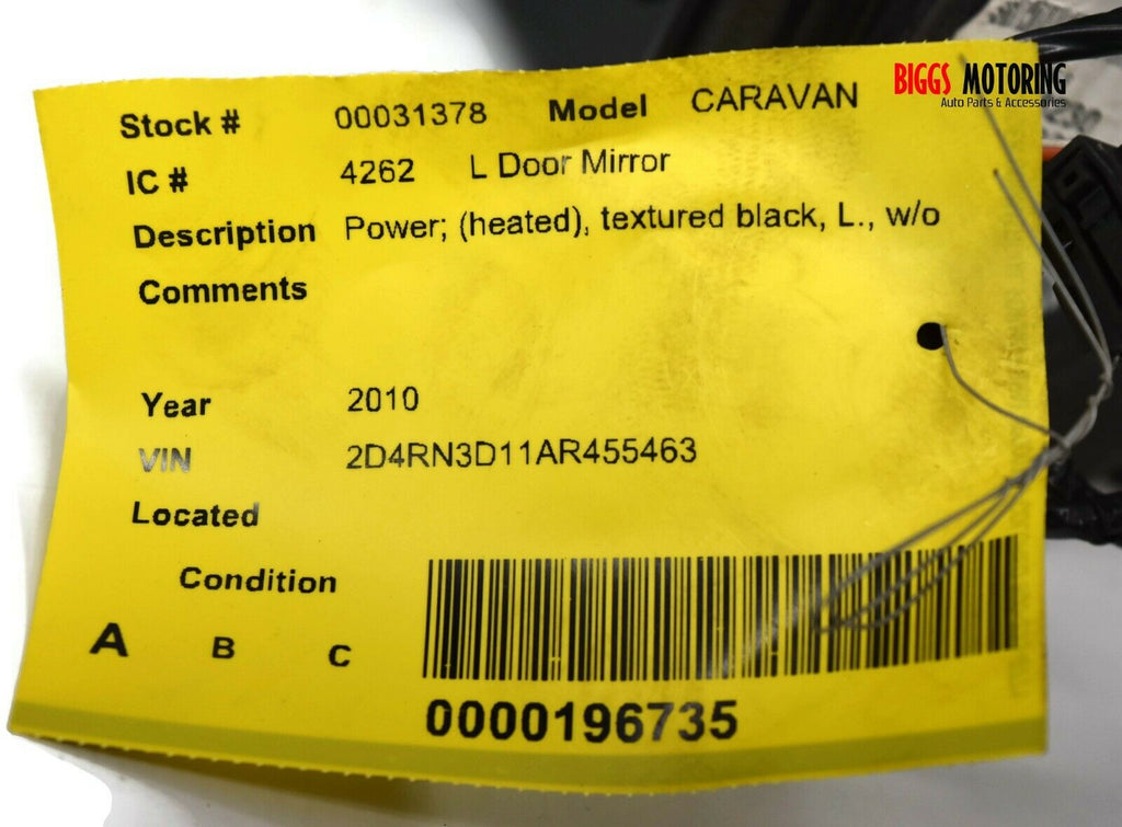 2008-2010 Dodge Caravan Driver Left Side Power Door Mirror Black 31378