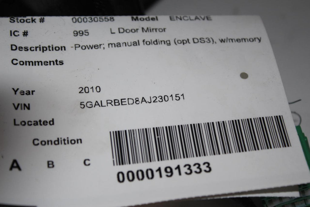 2008-2016 BUICK ENCLAVE DRIVER LEFT SIDE POWER DOOR MIRROR