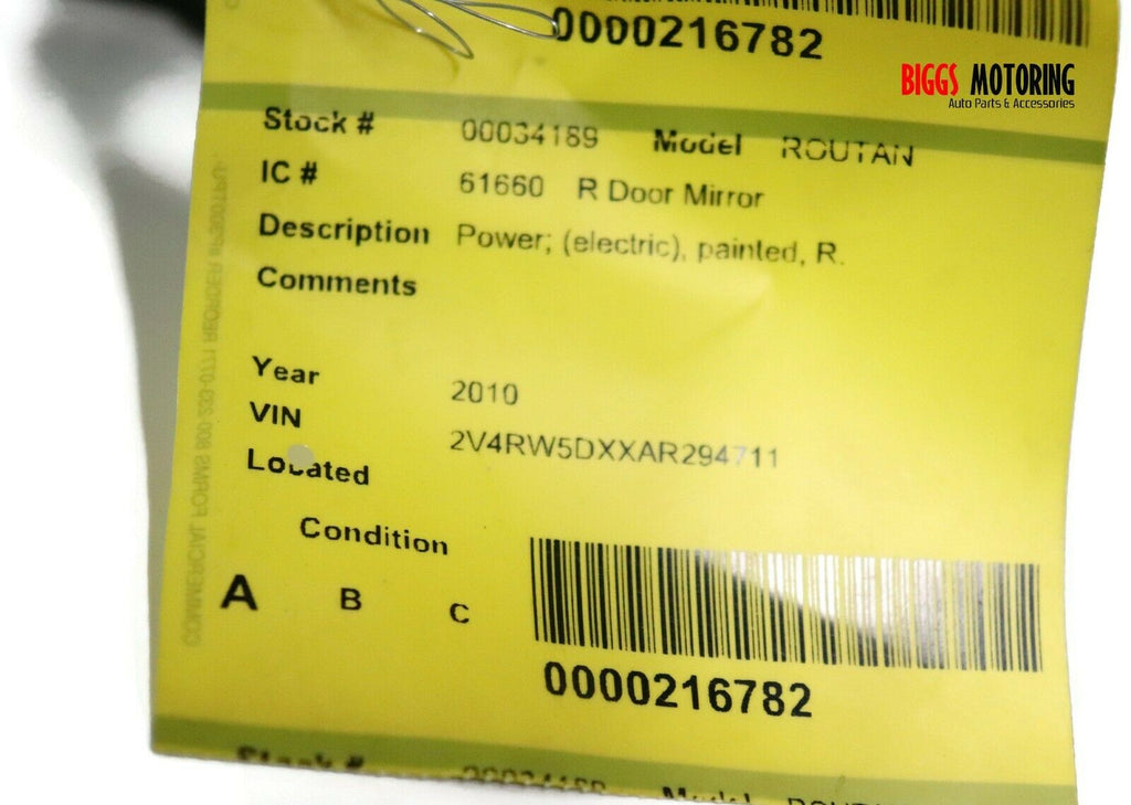 2009-2014 VW Routan Passenger Right Side Power Door Mirror Black 34189