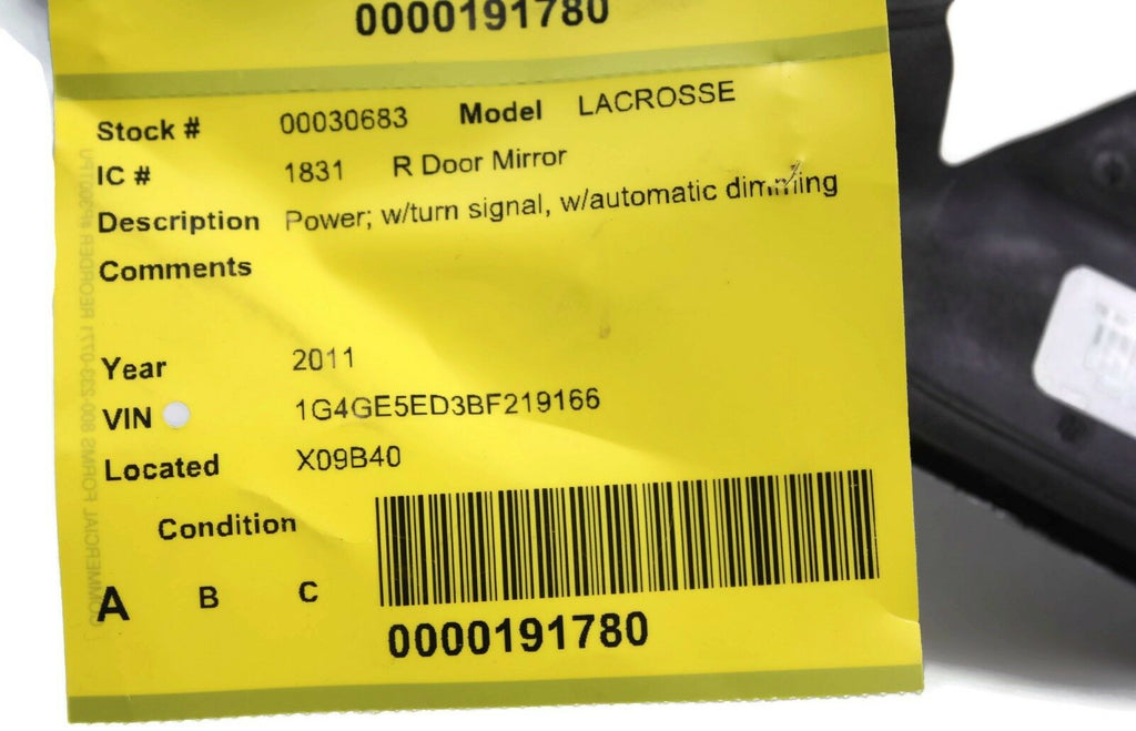 2010-2013 BUICK LACROSSE PASSENGER RIGHT SIDE POWER DOOR MIRROR SILVER 30683
