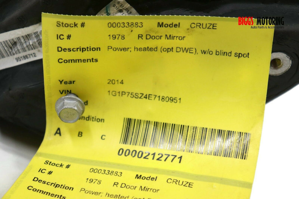 2011-2016 Chevy Cruze Passenger Right Side Power Door Mirror Silver 33883