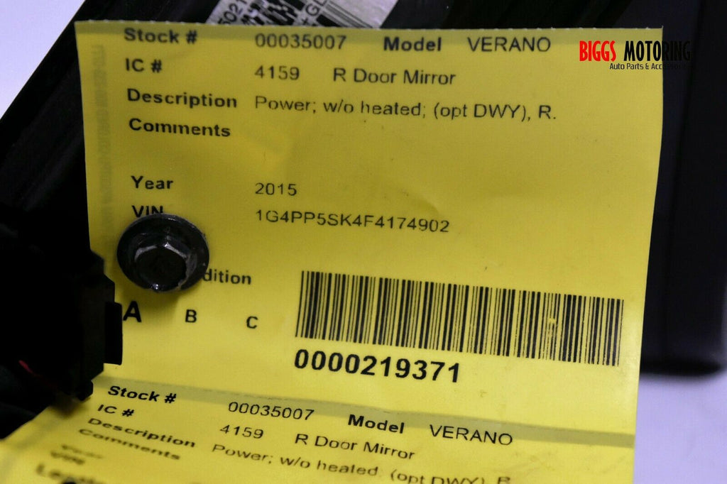 2012-2017 Buick Verano Passenger Right Side Power Door Mirror Gray 35007