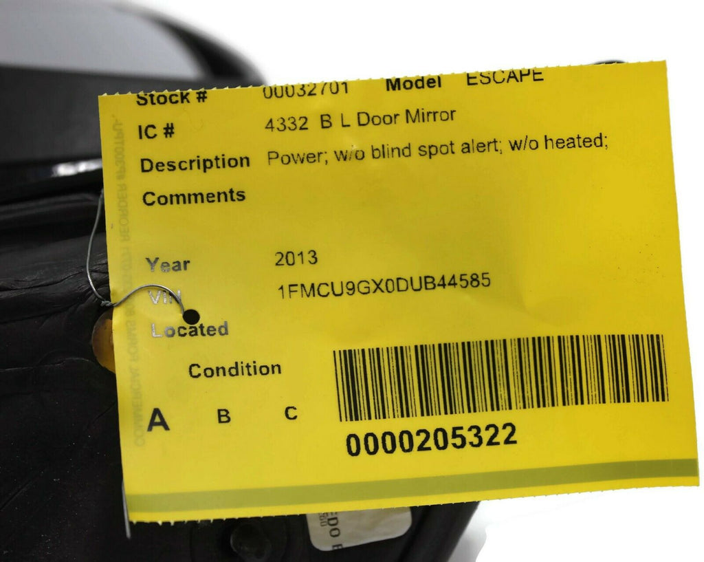 2013-2016 Ford Escape Driver Left Side Power Door Mirror Black 32701