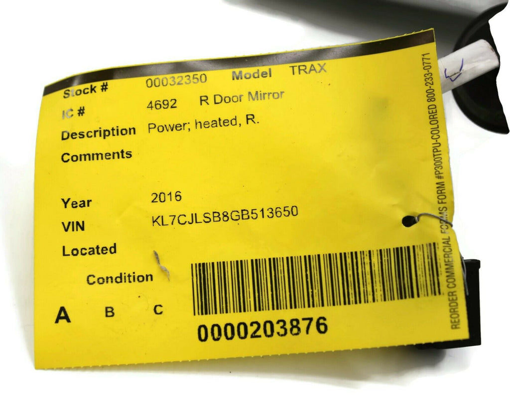 2015-2016 CHEVY TRAX PASSENGER RIGHT SIDE POWER DOOR MIRROR SILVER 32350